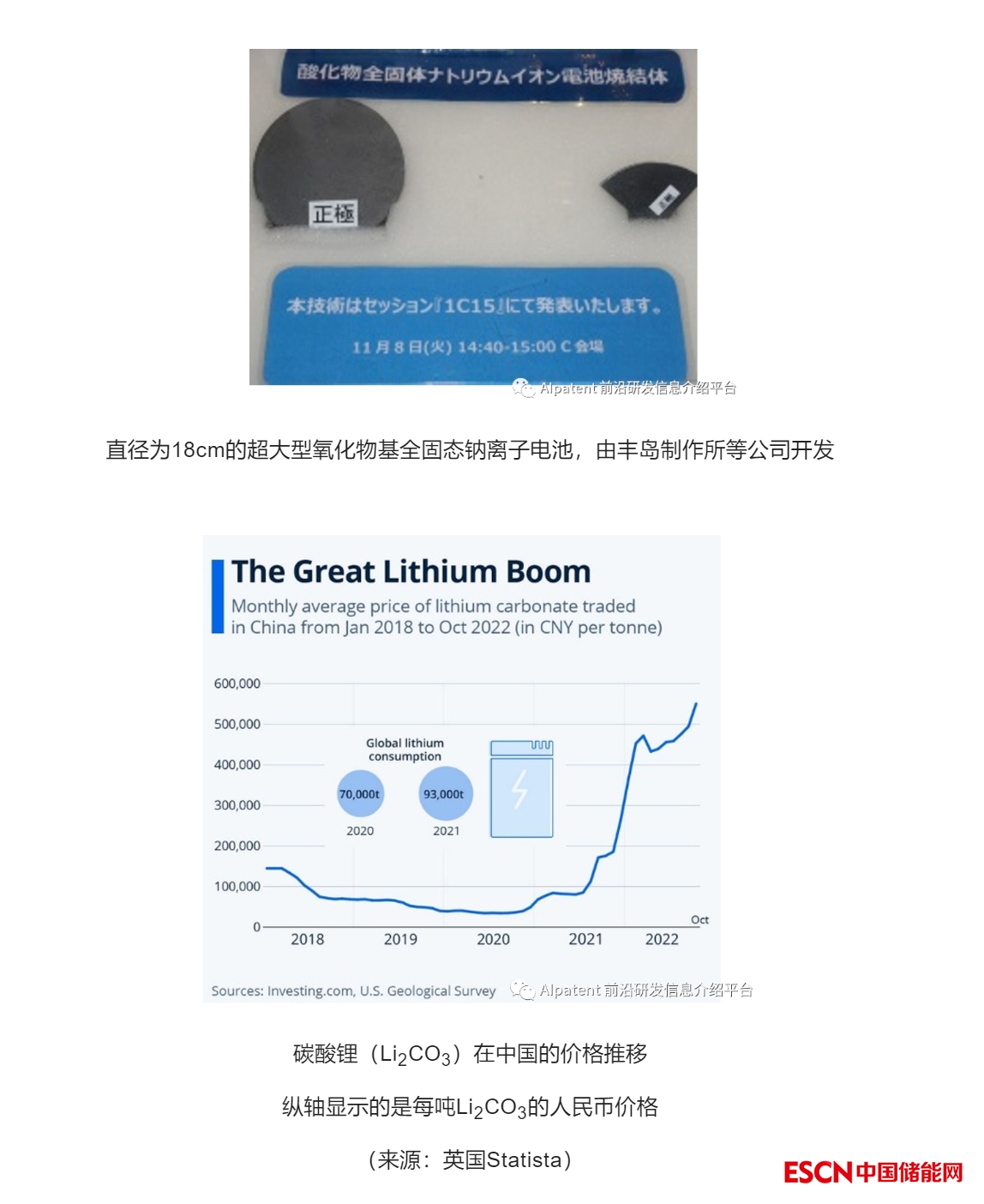 中國儲(chǔ)能網(wǎng)訊:日本第63屆日本電池研討會(huì)研討會(huì)上最為引人注目的是鈉(Na)離子電池(NIB)的發(fā)展。其背景源于中國和歐洲的鋰(Li)離子可充電電池(LIB)生產(chǎn)擴(kuò)大勢(shì)頭迅猛,致使Li供不應(yīng)求,結(jié)果導(dǎo)致碳酸鋰的期貨價(jià)格飆升至2020年價(jià)格的10倍以上,且預(yù)期仍會(huì)持續(xù)上升(圖1)。碳酸鋰的價(jià)格飆升曾在2017年前后發(fā)生過一次,然而與本次相比,當(dāng)年的漲價(jià)不值一提。本次碳酸鋰價(jià)格居高不下,對(duì)未來的LIB價(jià)格將會(huì)帶來巨大影響。