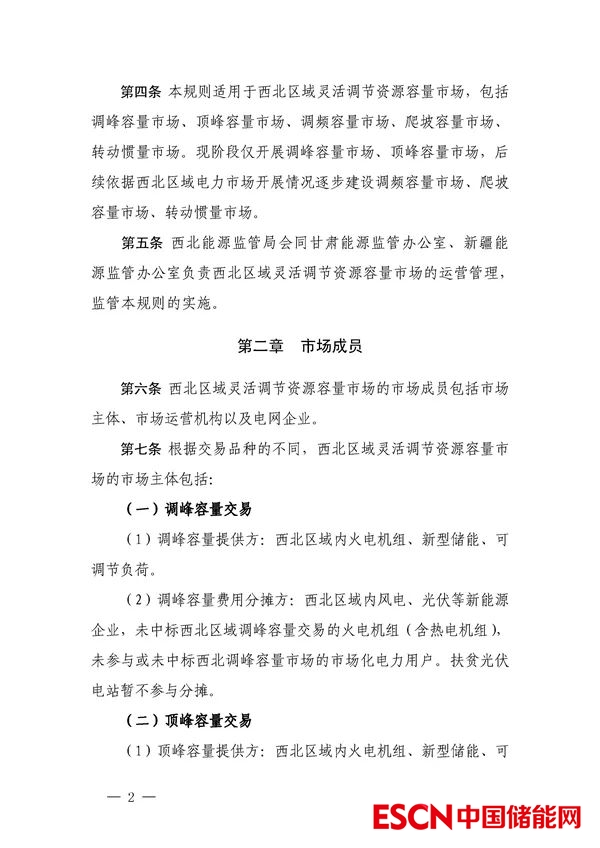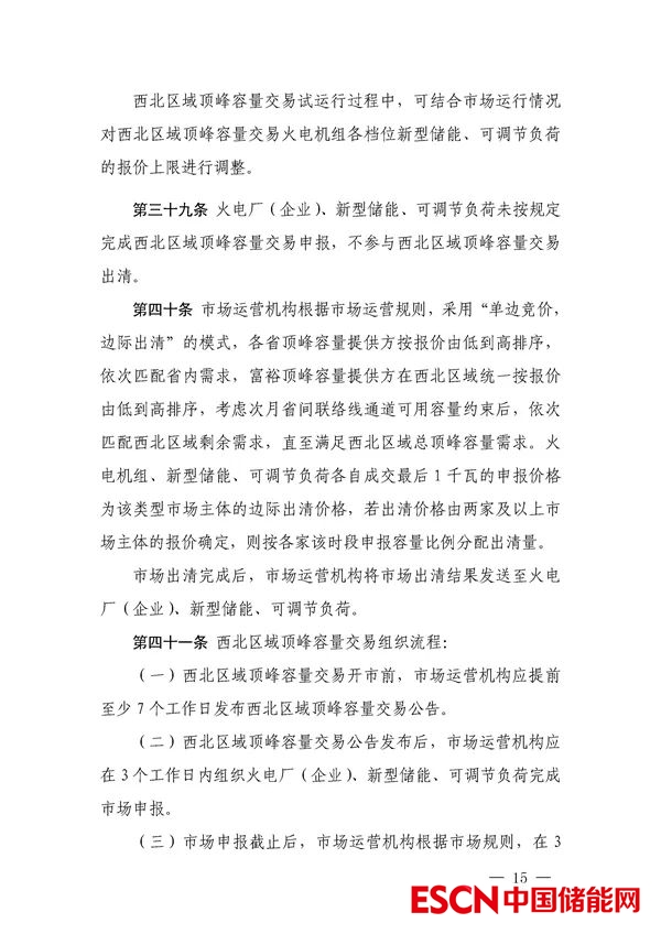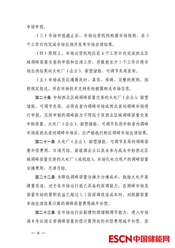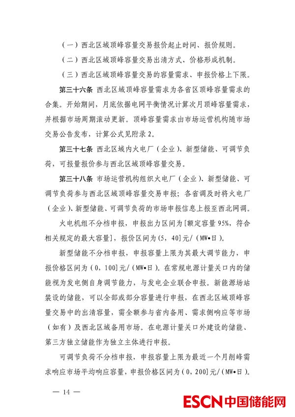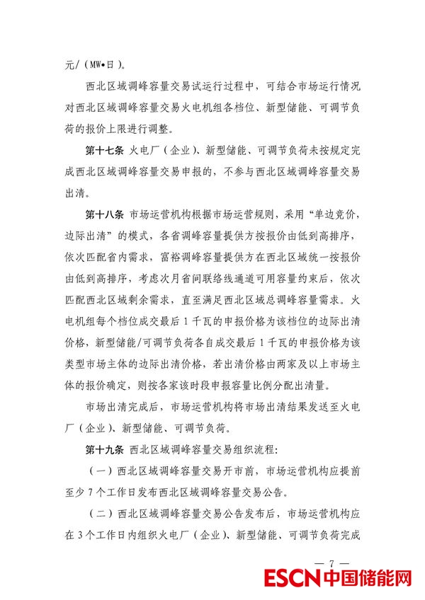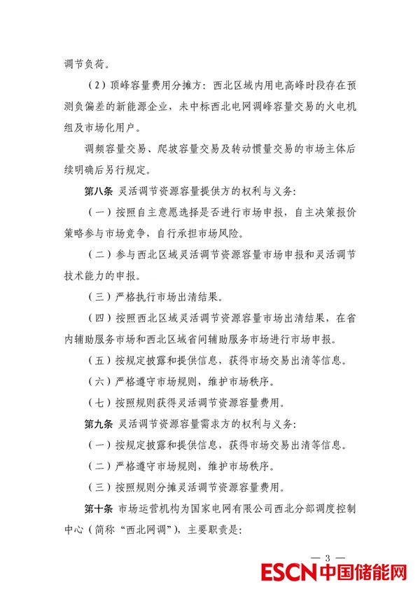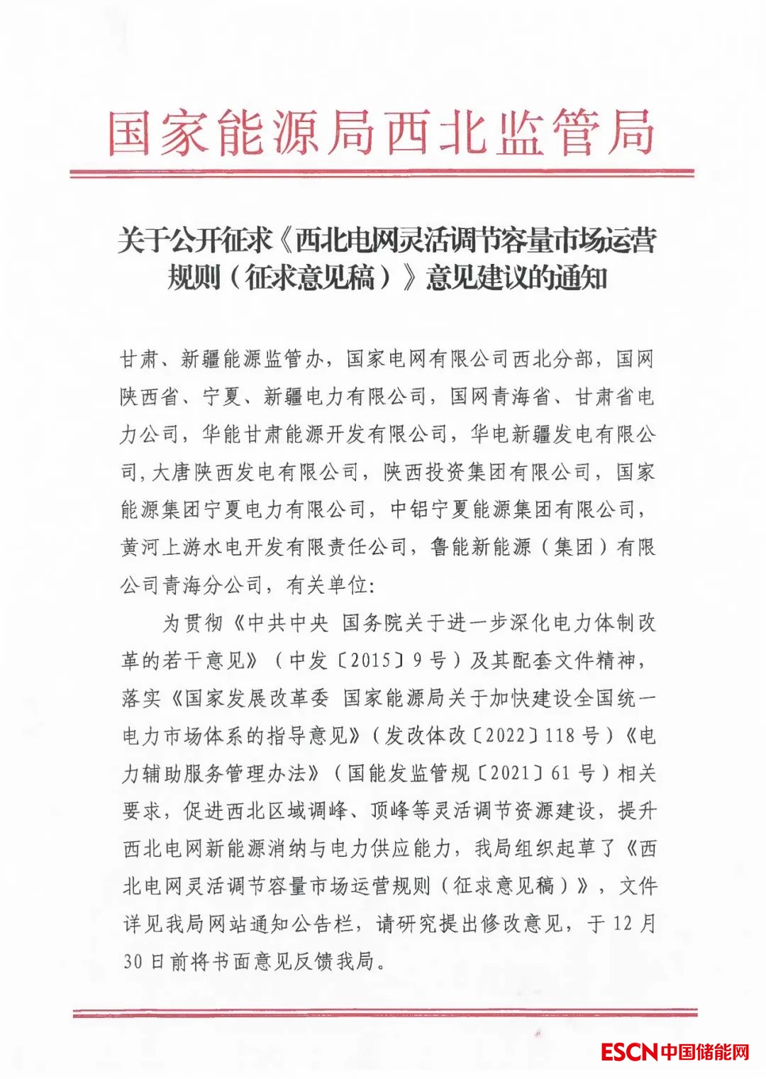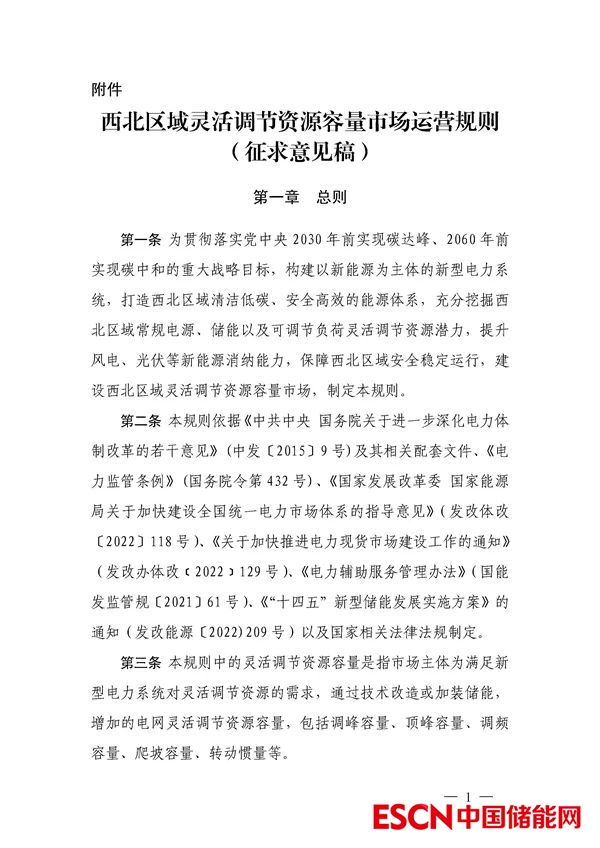 中國儲能網(wǎng)訊:12月1日,國家能源局西北監(jiān)管局發(fā)布關(guān)于公開征求《西北電網(wǎng)靈活調(diào)節(jié)容量市場運營規(guī)則(征求意見稿)》意見建議的通知。其中,文件表示,為貫徹落實黨中央 2030 年前實現(xiàn)碳達(dá)峰、2060 年前實現(xiàn)碳中和的重大戰(zhàn)略目標(biāo),構(gòu)建以新能源為主體的新型電力系統(tǒng),打造西北區(qū)域清潔低碳、安全高效的能源體系,充分挖掘西北區(qū)域常規(guī)電源、儲能以及可調(diào)節(jié)負(fù)荷靈活調(diào)節(jié)資源潛力,提升風(fēng)電、光伏等新能源消納能力,保障西北區(qū)域安全穩(wěn)定運行,建設(shè)西北區(qū)域靈活調(diào)節(jié)資源容量市場。
