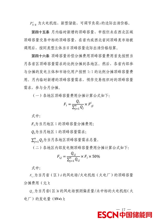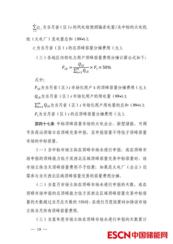 (2)頂峰容量費用分?jǐn)偡剑何鞅眳^(qū)域內(nèi)用電高峰時段存在預(yù)測負(fù)偏差的新能源企業(yè),未中標(biāo)西北電網(wǎng)調(diào)峰容量交易的火電機(jī)組及市場化用戶。