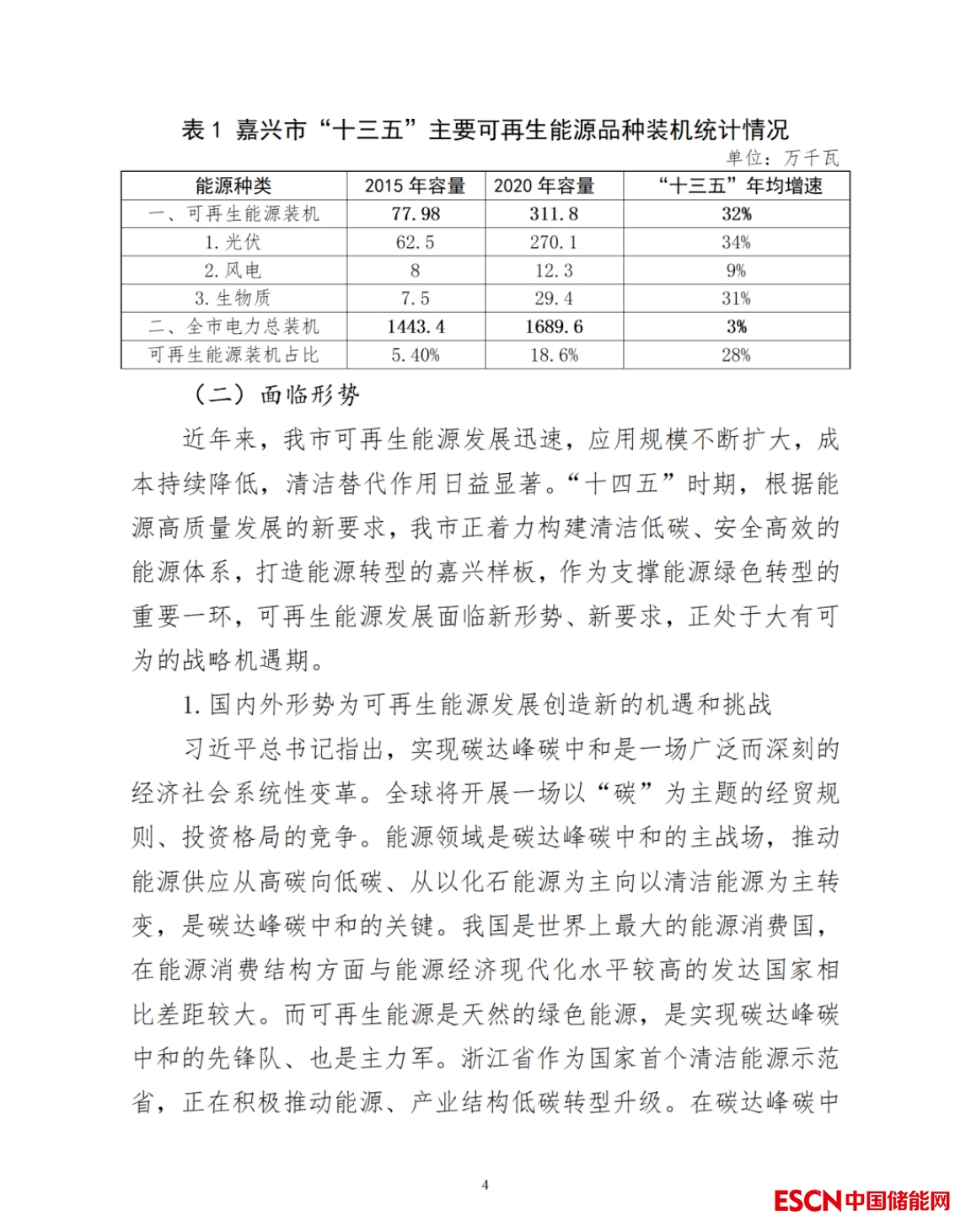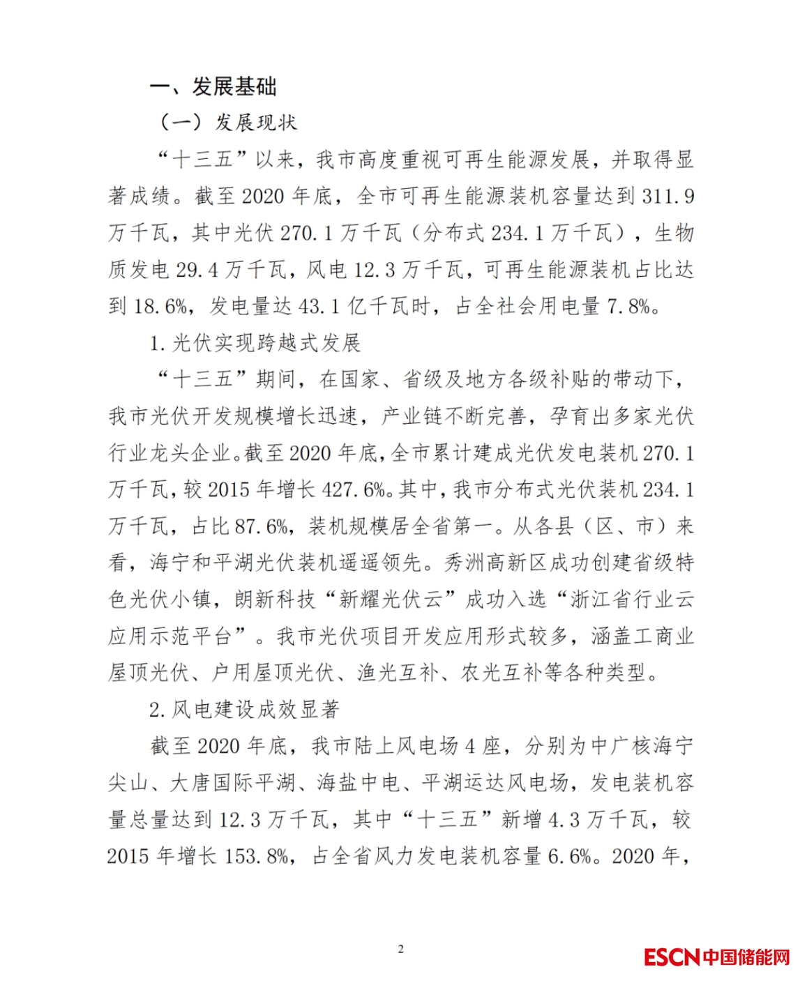 中國(guó)儲(chǔ)能網(wǎng)訊:近日,浙江省嘉興市發(fā)改委印發(fā)《嘉興市可再生能源發(fā)展“十四五”規(guī)劃》。