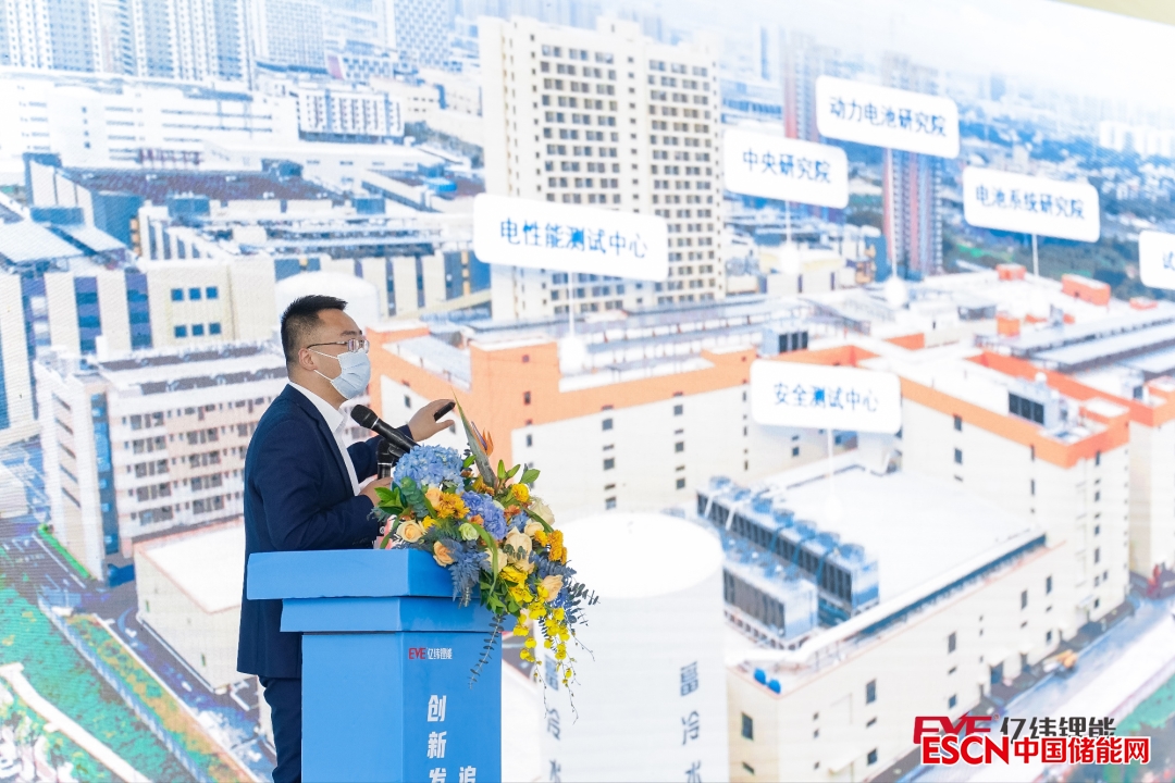 億緯鋰能動(dòng)力電池研究院院長(zhǎng)何巍博士,向現(xiàn)場(chǎng)的領(lǐng)導(dǎo)、來(lái)賓介紹億緯鋰能總部研發(fā)中心項(xiàng)目概況。