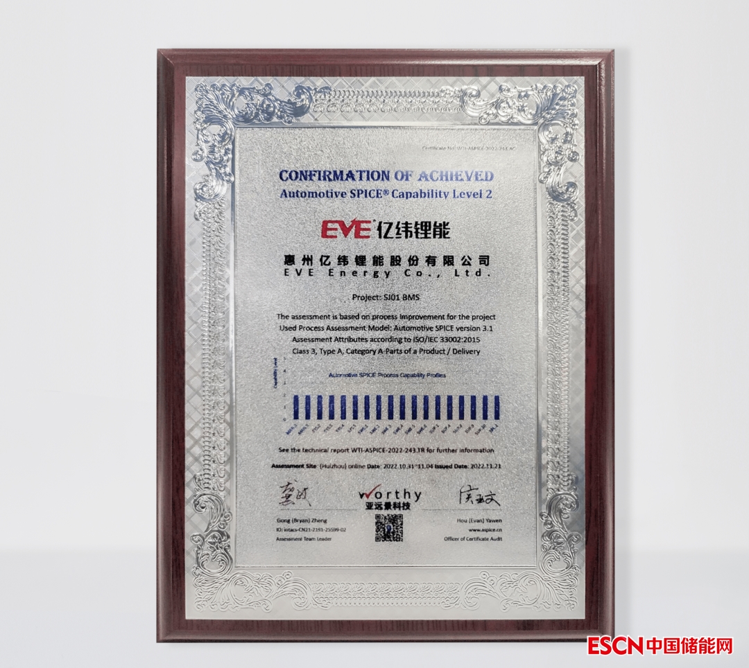 中國儲能網(wǎng)訊:近日,惠州億緯鋰能股份有限公司(以下簡稱“公司”)SJ01 BMS項(xiàng)目通過Automotive SPICE Capability Level 2(以下簡稱“ASPICE CL2”)認(rèn)證,標(biāo)志著公司的BMS開發(fā)能力達(dá)到國際領(lǐng)先水平。