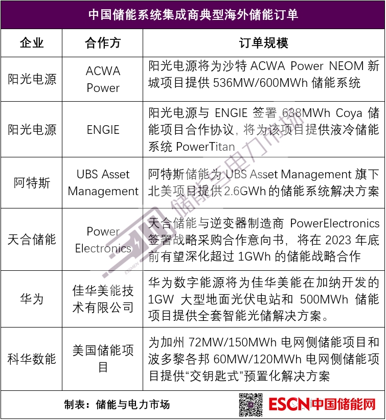根據儲能與電力市場的不完全統(tǒng)計,2022年中國企業(yè)簽訂的海外儲能訂單合計超過63GWh,并且呈現出電池和儲能系統(tǒng)多點開花的特點。
