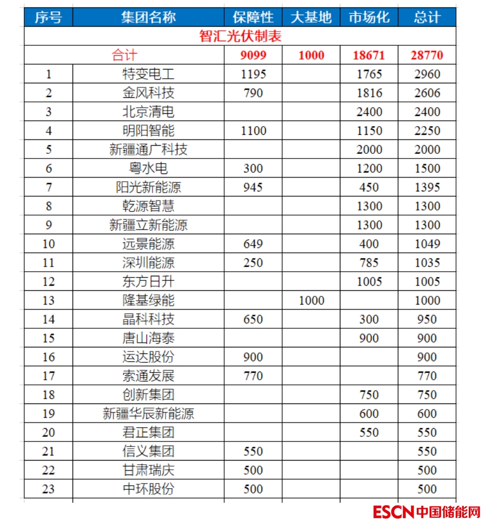 粵水電、陽(yáng)光新能源、乾源智慧、新疆立新能源、遠(yuǎn)景能源,均獲得超過1GW的項(xiàng)目。其他企業(yè)情況如下表所示。