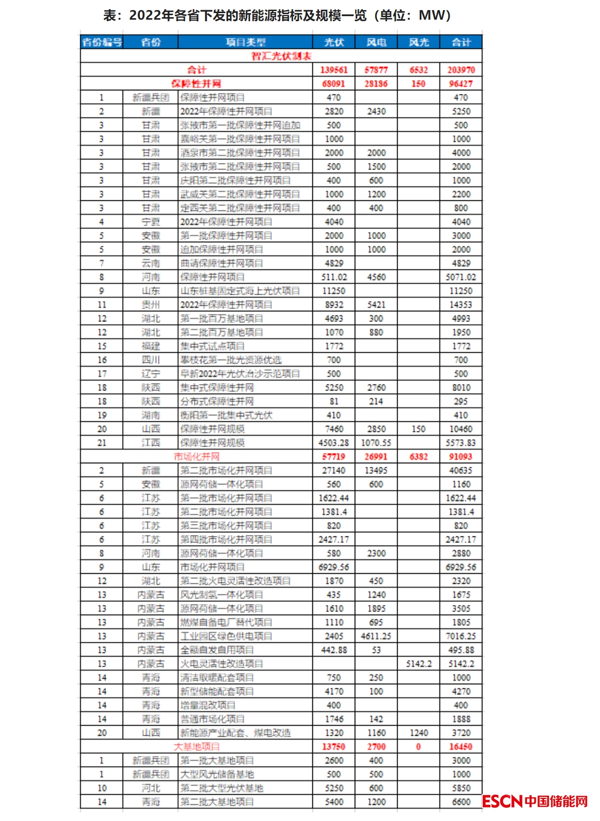 中國(guó)儲(chǔ)能網(wǎng)訊:隨著2022年底的臨近,各省2022年的新能源項(xiàng)目分配工作也基本完成。根據(jù)公開消息,在2022年,共21個(gè)省完成了新能源項(xiàng)目分配工作,總規(guī)模為203.97GW,包括保障性規(guī)模96.427GW、市場(chǎng)化規(guī)模91.094GW、大基地項(xiàng)目16.45GW。具體情況如下: