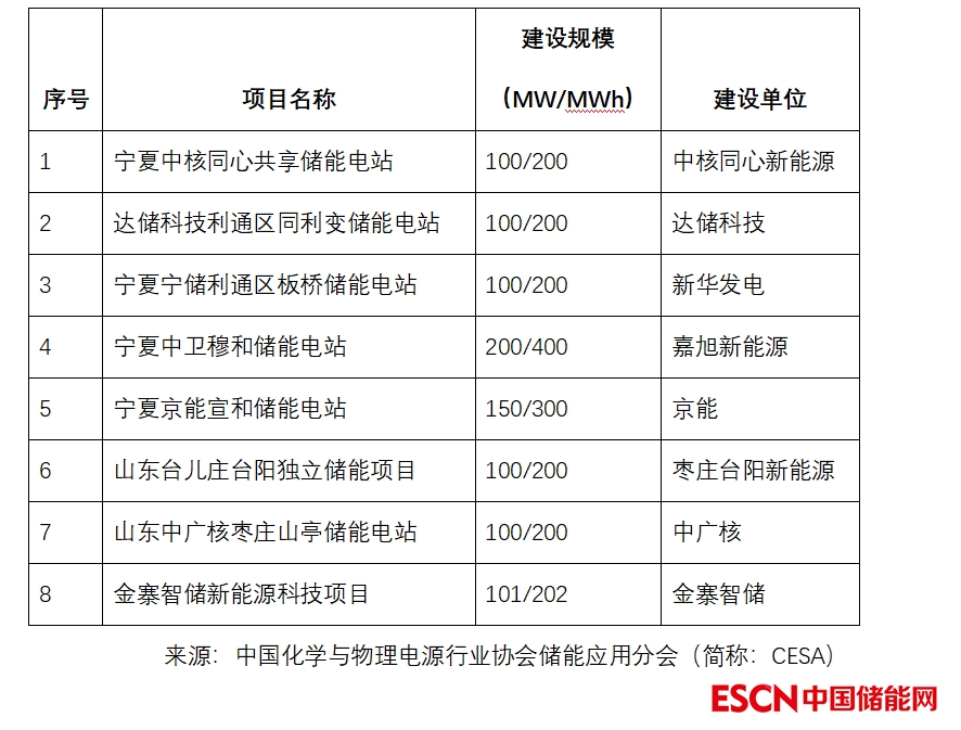 項目主要集中在寧夏和山東兩地,兩地高比例新能源對調節(jié)資源需求和電力市場政策是推動儲能電站建設的最大助力。