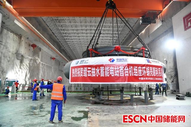 中國儲能網(wǎng)訊:近日,在國網(wǎng)新源浙江縉云抽水蓄能電站地下廠房,橋式起重機(jī)將座環(huán)蝸殼穩(wěn)穩(wěn)吊起,移動至1號機(jī)組中心后,緩慢下降至機(jī)坑安裝基礎(chǔ)上,縉云電站機(jī)電安裝標(biāo)第一個大件——1號機(jī)座環(huán)蝸殼順利吊裝成功,標(biāo)志著電站機(jī)電安裝正式進(jìn)入新階段!