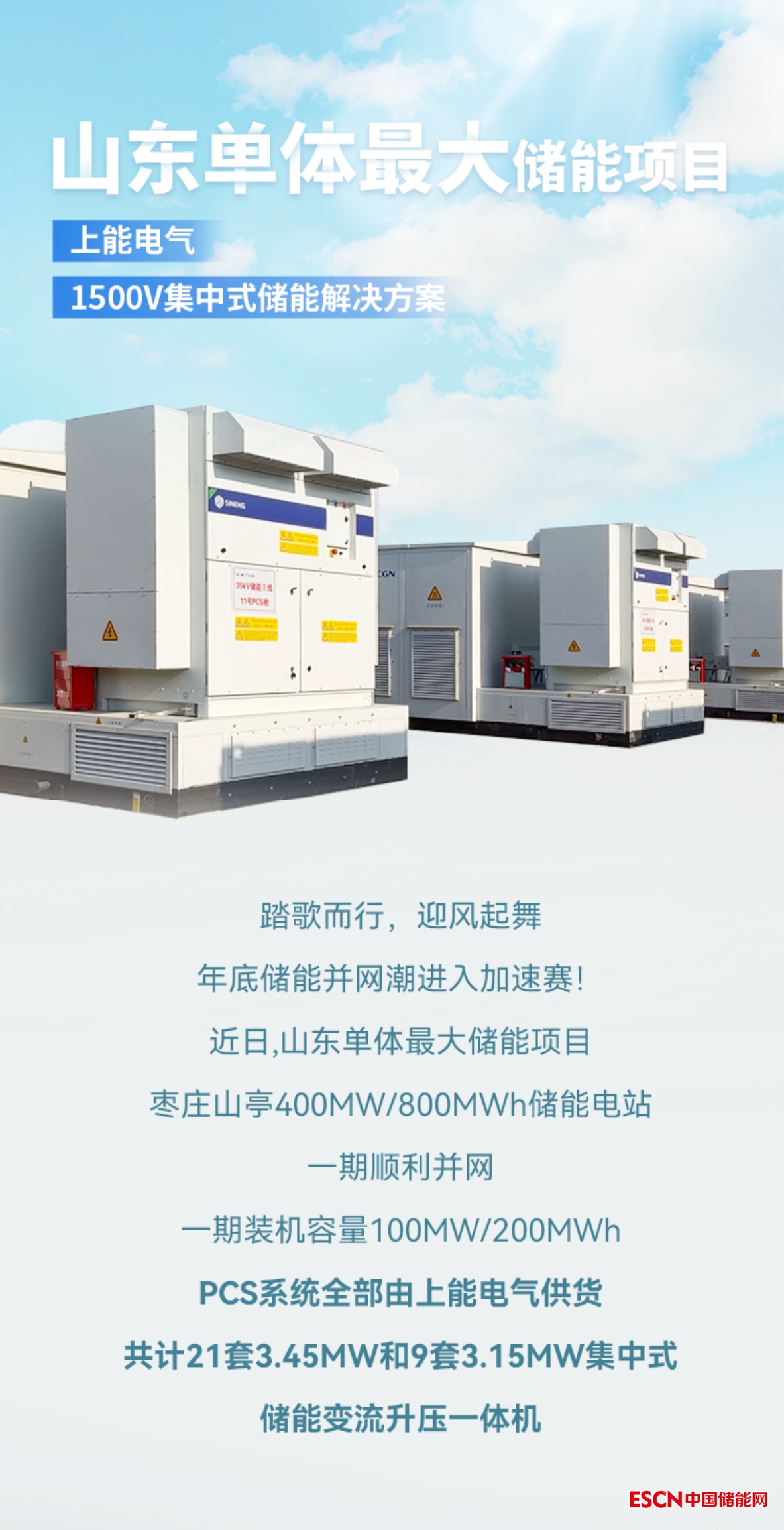 山東單體最大儲能項目并網(wǎng)!上能電氣儲曜齊魯大地