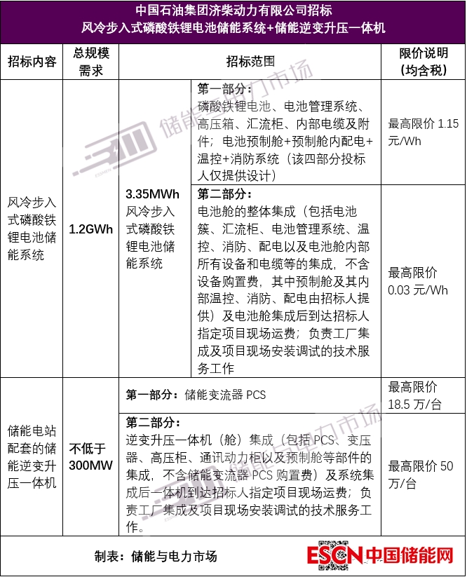 中國石油集團(tuán)濟(jì)柴動(dòng)力有限公司3.35MWh風(fēng)冷步入式磷酸鐵鋰電池儲能系統(tǒng)招標(biāo)公告