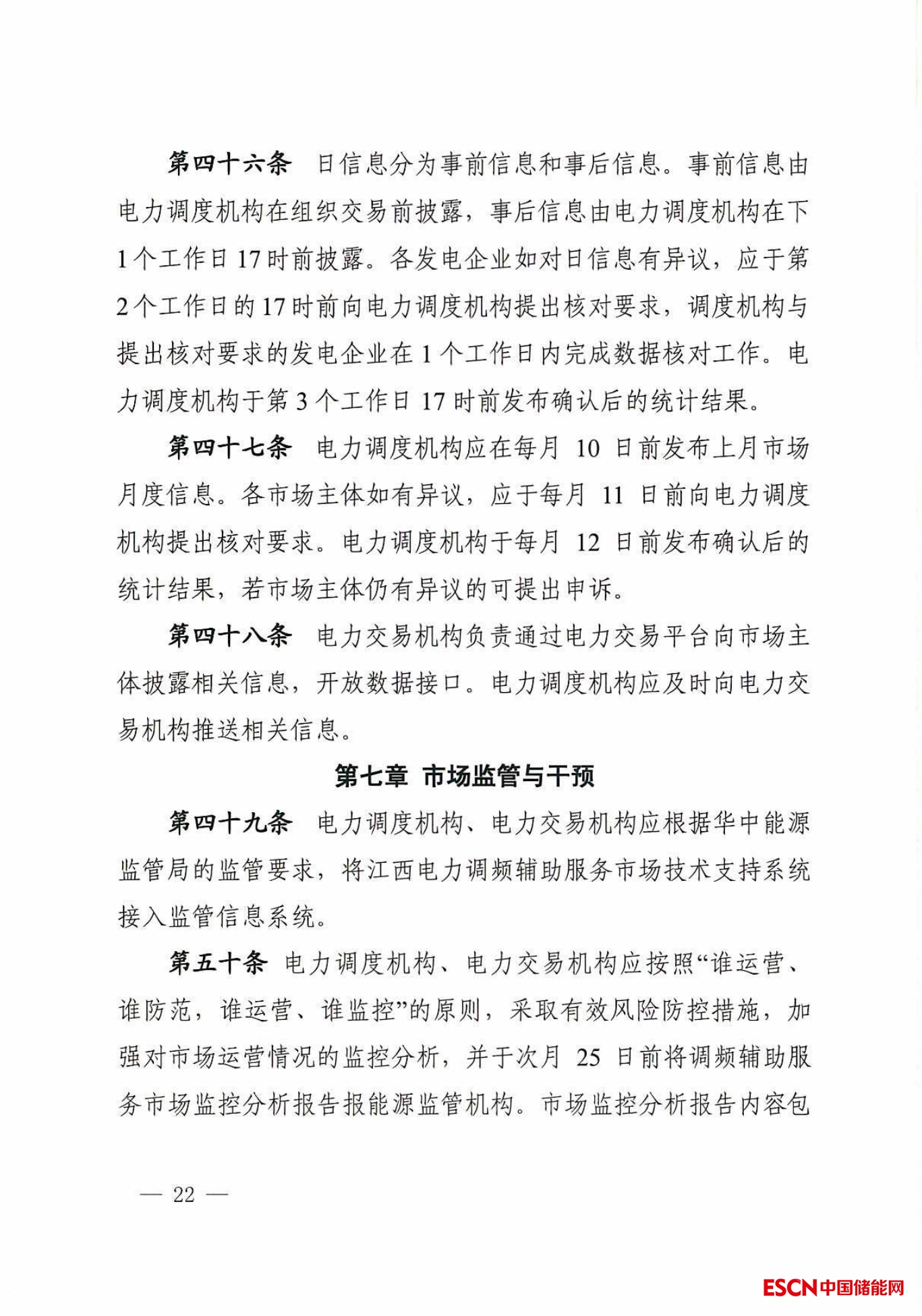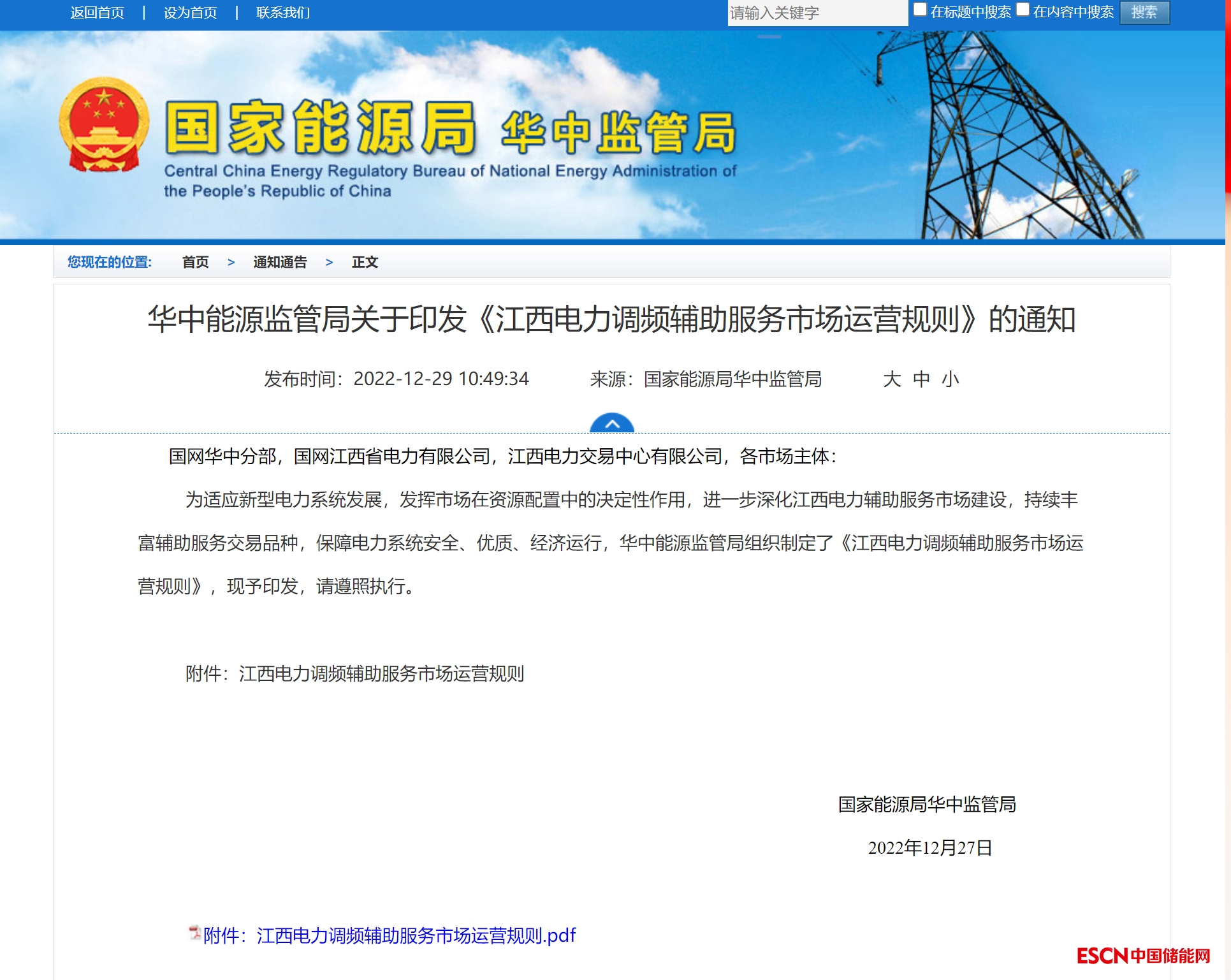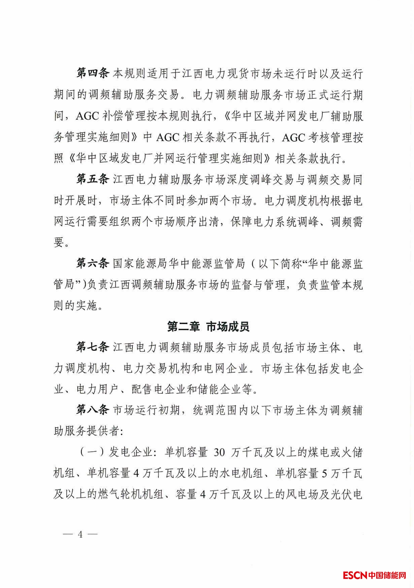 12月29日,華中能監(jiān)局印發(fā)了《江西電力調(diào)頻輔助服務(wù)市場運營規(guī)則》(以下簡稱《運營規(guī)則》),指出單機容量300MW及以上的火儲聯(lián)合機組、4MW/4MWh以上的獨立儲能電站及儲能裝置,風儲、光儲可以為系統(tǒng)提供調(diào)頻輔助服務(wù)。