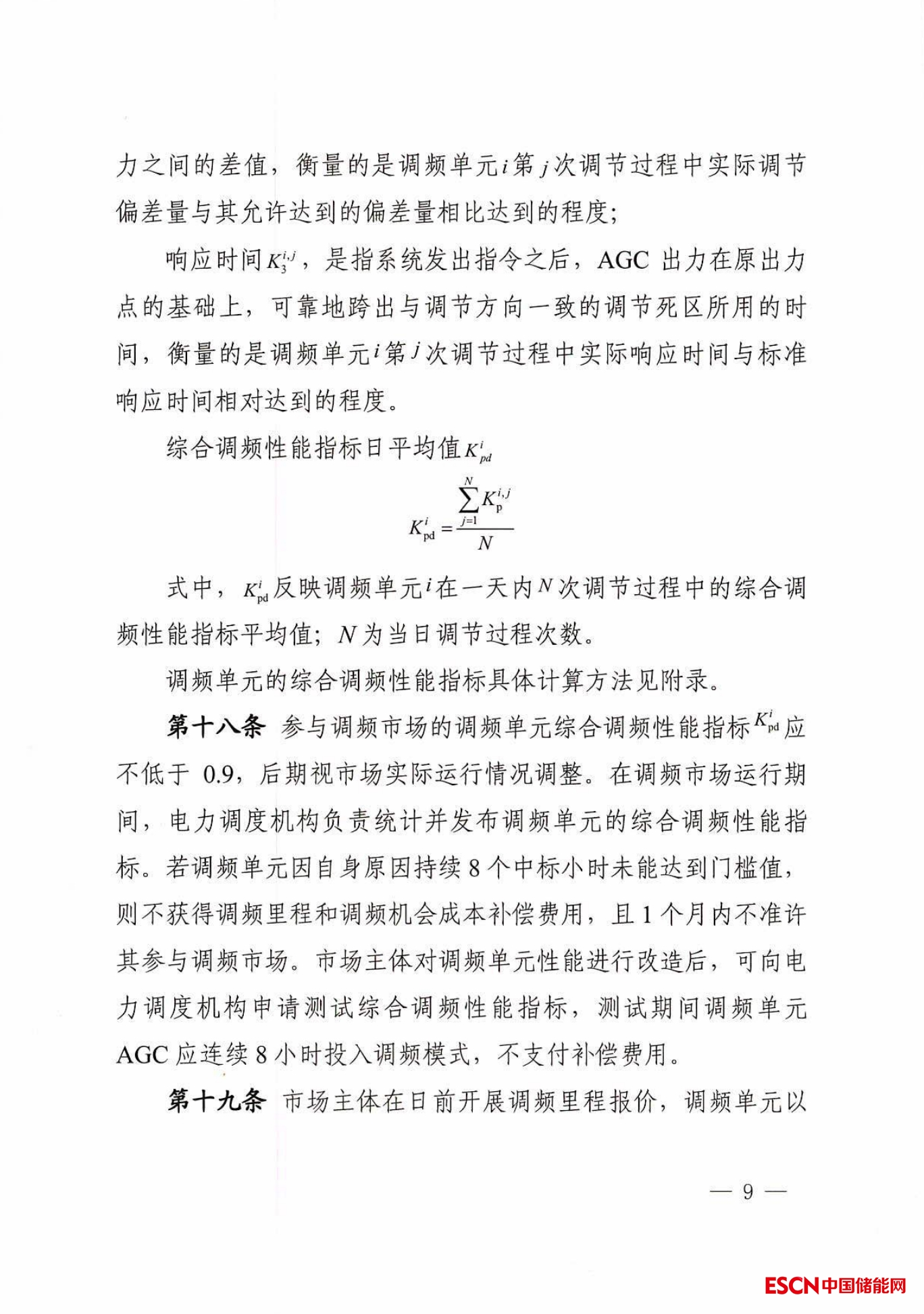 參與市場的調(diào)頻資源,綜合調(diào)頻性能指標需不低于0.9。