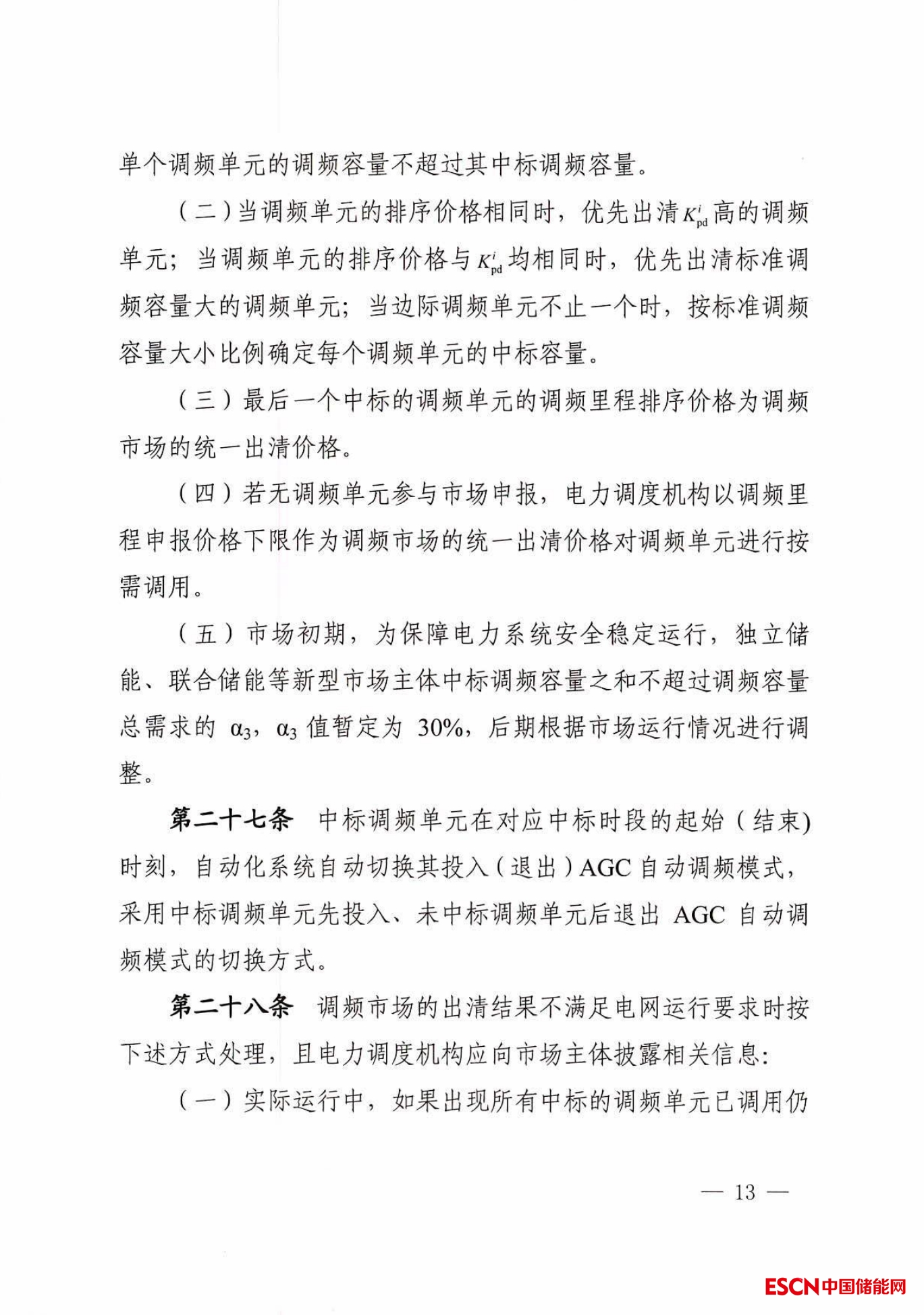 中標調(diào)頻單元的調(diào)頻容量不超過其標準調(diào)頻容量。而標準調(diào)頻容量方面,儲能也有限制,儲能、聯(lián)合儲能的標準調(diào)節(jié)容量將不超過額定容量的10%,進一步限制了儲能參與市場的總量。