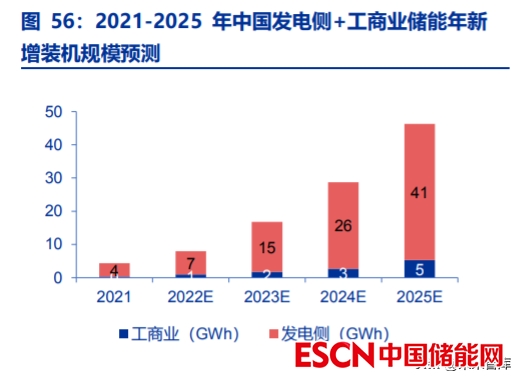 分時(shí)電價(jià)機(jī)制優(yōu)化,多地峰谷價(jià)差不斷拉大。自 2H21 以來,全國(guó)超過 20 個(gè)省調(diào)整分 時(shí)電價(jià)政策,適度拉大峰谷價(jià)差水平并建立尖峰電價(jià)機(jī)制,以此鼓勵(lì)工商業(yè)用戶配置儲(chǔ)能。 根據(jù) GGII,峰谷價(jià)差超過 0.7 元/度的地區(qū)有 21 個(gè)省市,除去 1.5 倍代理購(gòu)電價(jià)格,也有 15 個(gè)省市最大峰谷價(jià)差超 0.7 元/度。目前國(guó)內(nèi)工商業(yè)儲(chǔ)能收入主要來源兩部分,一部分是峰谷價(jià)差套利,另一部分是利用剩余容量參與電力輔助市場(chǎng)競(jìng)標(biāo),提供需求側(cè)響應(yīng)服務(wù)。 峰谷價(jià)差套利的收入是工商業(yè)儲(chǔ)能收入的大頭,收入占比可達(dá) 80%以上。我們預(yù)計(jì),在限 電趨緊,分布式光伏滲透率提升以及電價(jià)市場(chǎng)化改革的推進(jìn)下,國(guó)內(nèi)工商業(yè)儲(chǔ)能發(fā)展有望 進(jìn)入快車道。根據(jù)GGII預(yù)計(jì),22年/25年國(guó)內(nèi)工商業(yè)儲(chǔ)能裝機(jī)有望分別突破1GWh/5GWh。