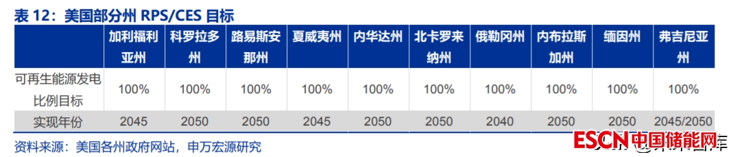 2.3.2 美國(guó):遠(yuǎn)期可再生能源發(fā)電目標(biāo)確立,儲(chǔ)能需求徐徐打開