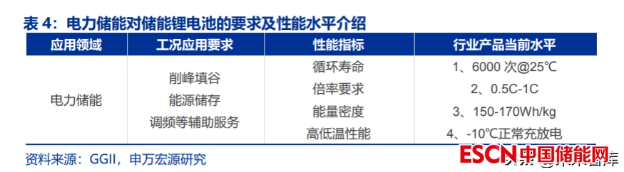 動(dòng)力電池側(cè)重能量密度的提升,而儲(chǔ)能電池更為側(cè)重循環(huán)壽命的提高。電力儲(chǔ)能項(xiàng)目 投資關(guān)注點(diǎn)短期內(nèi)以初始投資成本為主,中長(zhǎng)期的趨勢(shì)來看,將更看中全生命周期成本。 電力儲(chǔ)能對(duì)儲(chǔ)能系統(tǒng)循環(huán)壽命和倍率性能要求更高,而電力儲(chǔ)能應(yīng)用分為容量型和功率型, 其中容量型應(yīng)用注重電池充放的經(jīng)濟(jì)性,要求電芯和系統(tǒng)具備高循環(huán)壽命和寬泛的工作溫度范圍。功率型應(yīng)用注重短時(shí)調(diào)頻的實(shí)時(shí)響應(yīng),要求電池能短時(shí)間高倍率充放電。目前容 量型應(yīng)用是電力儲(chǔ)能主流,在電力儲(chǔ)能初始投資成本壓力較大的情況下,更高循環(huán)壽命的 電芯意味著全生命周期度電成本的降低。我們認(rèn)為,隨著國(guó)內(nèi)大型儲(chǔ)能建設(shè)的驅(qū)動(dòng)因素逐 漸由政策驅(qū)動(dòng)轉(zhuǎn)向政策+經(jīng)濟(jì)性聯(lián)合驅(qū)動(dòng),項(xiàng)目投資方將更加青睞循環(huán)壽命高的電池,儲(chǔ)能 行業(yè)競(jìng)爭(zhēng)將從重視初始投資成本轉(zhuǎn)向重視度電成本。