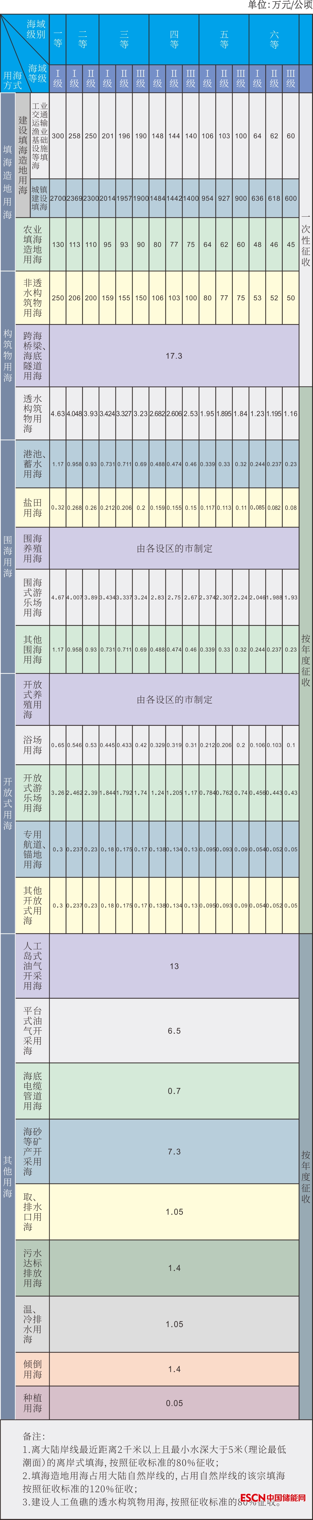 海域使用金征收標(biāo)準(zhǔn)
