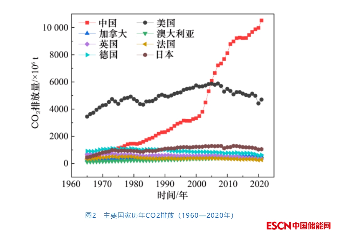能源活動(dòng)引起的CO2排放被認(rèn)為是導(dǎo)致全球氣候變暖的主要原因。據(jù)統(tǒng)計(jì),2021年全球共排放CO2約3.898×1010 t,其中能源相關(guān)的CO2排放約3.388×1010 t,占排放總量的86.9%。我國(guó)2021年CO2排放總量約為1.204×1010 t,其中能源活動(dòng)引起的CO2排放為1.052×1010 t。電力和工業(yè)部門是我國(guó)CO2排放的主體,合計(jì)占據(jù)能源相關(guān)CO2排放的77%。