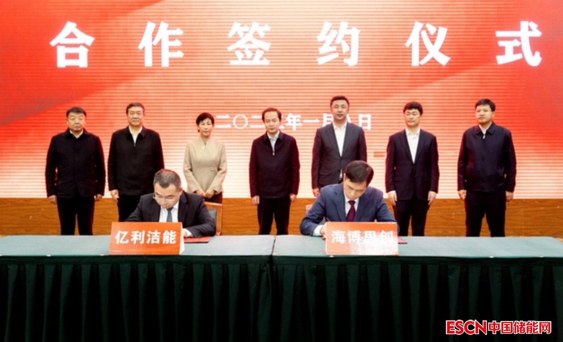 1月8日,在國家“十四五”新能源大基地建設重鎮(zhèn)之一鄂爾多斯,億利潔能(600277)與儲能翹楚海博思創(chuàng)簽署《合作協(xié)議》,雙方將成立由億利潔能控股50.5%、海博思創(chuàng)占股49.5%的合資公司,在電化學儲能整站集成、項目建設運維和電網(wǎng)服務技術以及物理儲能研發(fā)等方面開展合作,電化學儲能裝備設計產(chǎn)能10GWh/年以上,并開啟換電重卡和大工業(yè)園區(qū)用電側儲能新業(yè)態(tài),打造沙戈荒儲能系統(tǒng)綜合服務商,為國家沙戈荒新能源大基地產(chǎn)業(yè)鏈提供戰(zhàn)略支撐。鄂爾多斯市市長杜匯良、億利資源集團董事長王文彪、海博思創(chuàng)董事長張劍輝等出席簽約活動。在簽約活動之前,杜匯良會見了王文彪和張劍輝并座談。