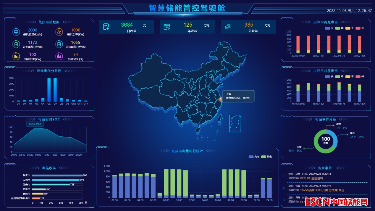 弘正智慧云平臺(tái)基于SaaS云服務(wù),主要對(duì)儲(chǔ)能電池、換流器、配電網(wǎng)絡(luò)、消防系統(tǒng)、溫控系統(tǒng)等進(jìn)行綜合性管理。平臺(tái)具有實(shí)時(shí)監(jiān)控、事件告警、收益分析、故障診斷、視頻監(jiān)控、運(yùn)維管理等多種業(yè)務(wù),其中實(shí)時(shí)監(jiān)控分布式發(fā)電、電池充放電、客戶(hù)用電情況,遠(yuǎn)程監(jiān)控儲(chǔ)能電站運(yùn)行;提供全面的運(yùn)營(yíng)管理、分析儲(chǔ)能系統(tǒng)的收益,實(shí)現(xiàn)了能源的最優(yōu)配置及利用。