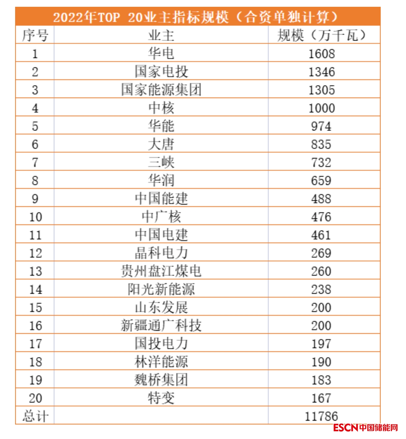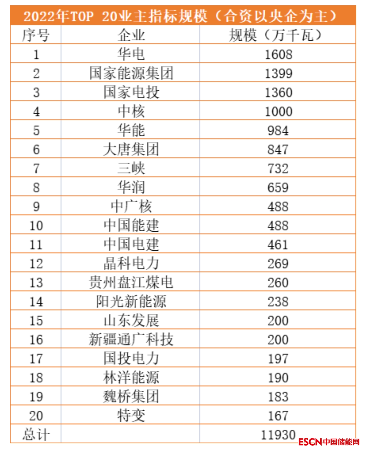2022年共有18個省市完成了超155GW光伏指標分配,如若按大多數(shù)地區(qū)普遍實行的10%/2小時比例去配置儲能,將產(chǎn)生至少15.5GW/31GWh的儲能需求。光伏項目的主力開發(fā)商也將成為未來儲能項目的主要業(yè)主和設備采購方。