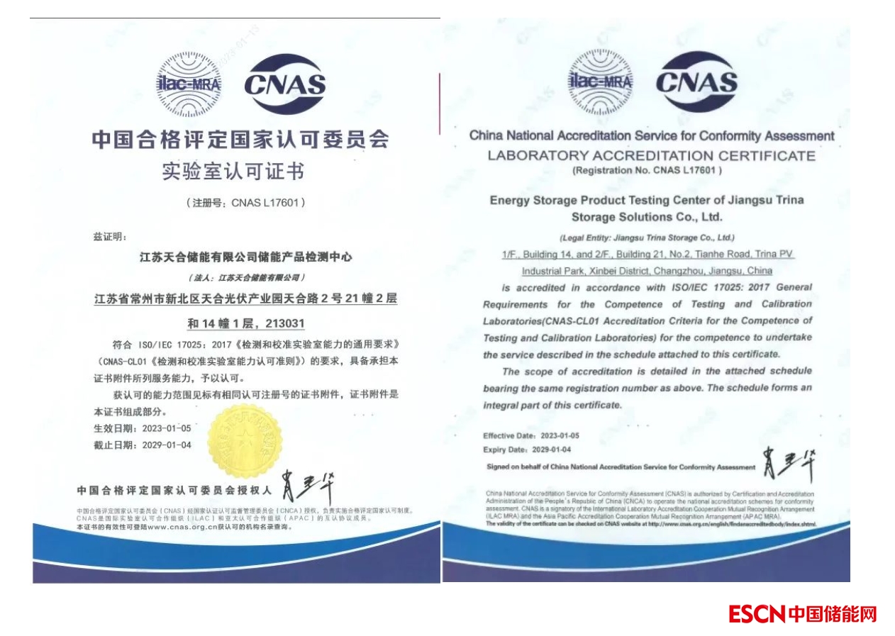 中國(guó)儲(chǔ)能網(wǎng)訊:近日,天合儲(chǔ)能順利通過了中國(guó)合格評(píng)定國(guó)家認(rèn)可委員會(huì)評(píng)審(簡(jiǎn)稱“CNAS”),成功獲得CNAS實(shí)驗(yàn)室認(rèn)可證書。這標(biāo)志著天合儲(chǔ)能檢測(cè)中心已成為國(guó)家認(rèn)可的檢測(cè)和校準(zhǔn)實(shí)驗(yàn)室,具備國(guó)家及國(guó)際認(rèn)可的管理水平和檢測(cè)能力,檢測(cè)中心認(rèn)可范圍內(nèi)的檢測(cè)結(jié)果可實(shí)現(xiàn)全球互認(rèn)。