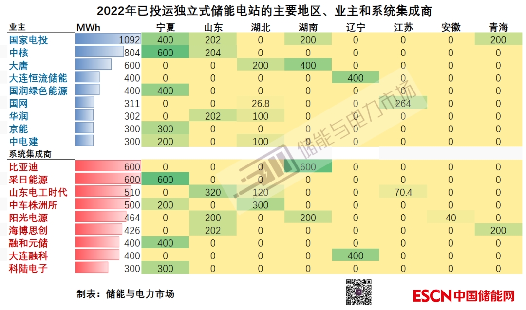 中核(含中核匯能、新華發(fā)電等)、華潤(含華潤新能源、華潤財金)、大唐、京能等開發(fā)商在2022年除了持續(xù)開發(fā)新能源儲能項目,也加大了獨(dú)立式儲能項目的開發(fā)力度,并有數(shù)個項目投運(yùn)。