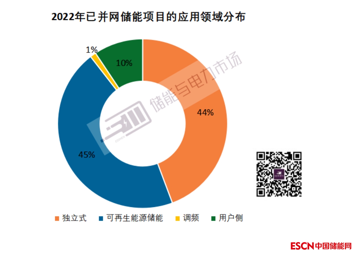 從2022年已并網(wǎng)項目的應(yīng)用領(lǐng)域來看,可再生能源儲能項目和獨(dú)立式儲能項目貢獻(xiàn)了絕大多數(shù)增量,分別占比達(dá)45%和44%。調(diào)頻儲能項目在2022年明顯降速,僅有8個項目投運(yùn)。得益于3個10小時鉛炭儲能項目投運(yùn),用戶側(cè)儲能項目在容量規(guī)模上大幅提升。