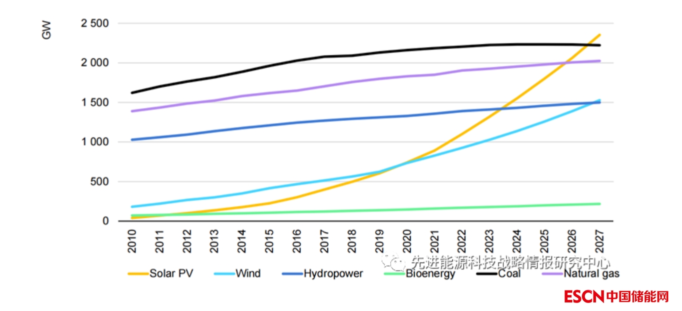 3、到2027年太陽能光伏裝機(jī)容量將超過煤電占據(jù)全球最大份額