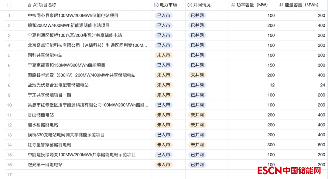 中國儲(chǔ)能網(wǎng)訊:在2022年末并網(wǎng)潮的驅(qū)動(dòng)下,全國各地大量儲(chǔ)能項(xiàng)目進(jìn)入市場(chǎng),隨著全國統(tǒng)一電力市場(chǎng)體系的逐步建立,這場(chǎng)經(jīng)濟(jì)性的考驗(yàn),對(duì)未來儲(chǔ)能的發(fā)展有著至關(guān)重要的影響。根據(jù)寧夏電力交易中心公開資料顯示,截止2023年1月16日,共受理注冊(cè)獨(dú)立儲(chǔ)能電站項(xiàng)目8個(gè),合計(jì)容量2.1GWh(名單詳見表格)。根據(jù)《寧夏回族自治區(qū)可再生能源發(fā)展“十四五”規(guī)劃》, 到 2025 年可再生能源裝機(jī)規(guī)模超過 50GW,力爭(zhēng)達(dá)到 55 GW,按照不低于10%的儲(chǔ)能配置,設(shè)定了5GW的新型儲(chǔ)能建設(shè)目標(biāo)。