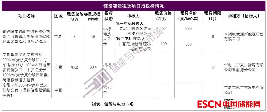 寧夏儲(chǔ)能容量租賃項(xiàng)目情況如下表所示。