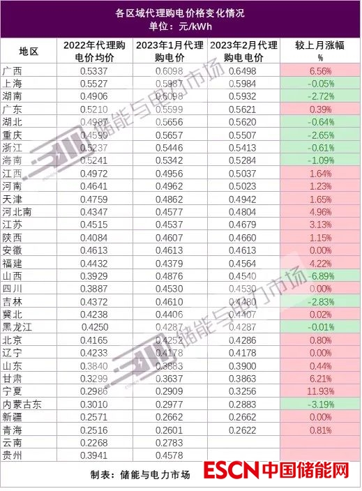 中國儲能網(wǎng)訊:2023年2月各地電網(wǎng)代理購電價格,除云南、貴州外,已然出爐。以35千伏工商業(yè)兩部制電價作為分析對象,儲能與電力市場發(fā)現(xiàn):