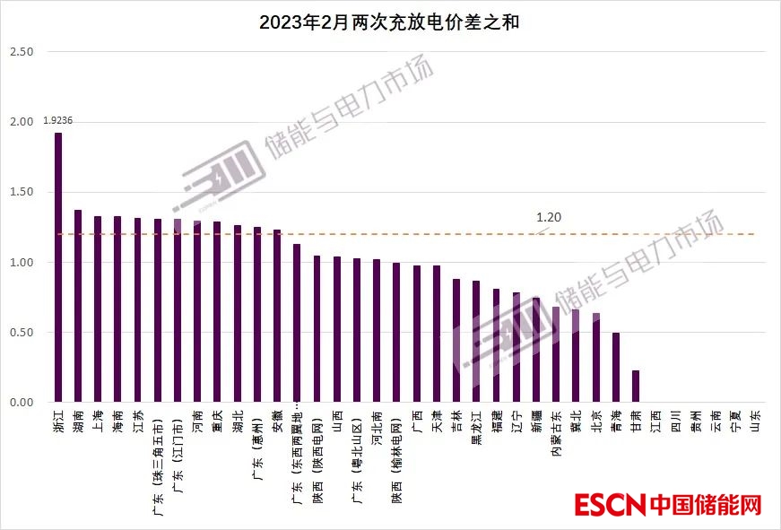 12個區(qū)域兩次充放電電價差之和超過1.2元/kWh:浙江、湖南、上海、海南、江蘇、廣東(珠三角五市)、廣東(江門市)、河南、重慶、湖北、廣東(惠州)、安徽 。
