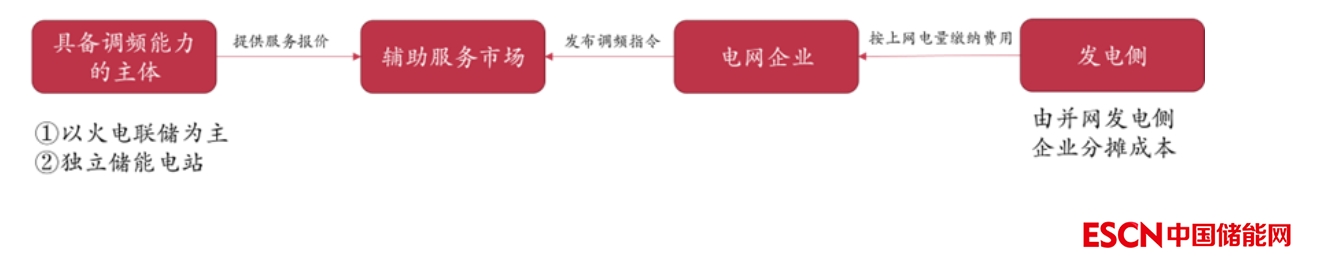 南方電網(wǎng)調(diào)頻服務(wù)市場交易模式:所有上網(wǎng)主體均要按照上網(wǎng)電量繳納調(diào)頻費(fèi),形成資金池;電站投資方通過與火電廠簽訂合約的方式在火電廠旁建設(shè)儲(chǔ)能調(diào)頻電站。根據(jù)提供的調(diào)頻服務(wù),電網(wǎng)從將資金池中資金以調(diào)頻補(bǔ)貼方式給予電站,隨后電廠與電站分成。