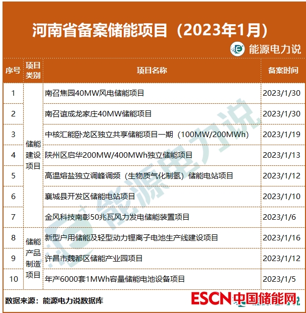 1月,河南省備案儲能項目10個,其中儲能建設項目7個,儲能產(chǎn)品制造基地項目3個。