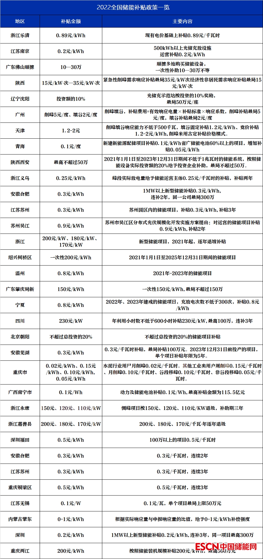 儲(chǔ)能補(bǔ)貼一覽