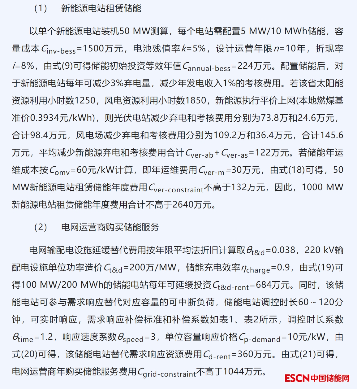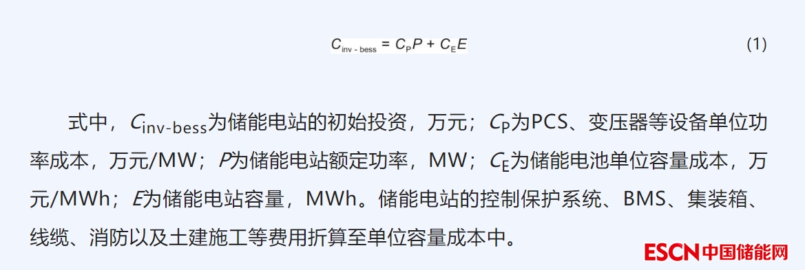 儲(chǔ)能電站的容量成本主要為初始投資: