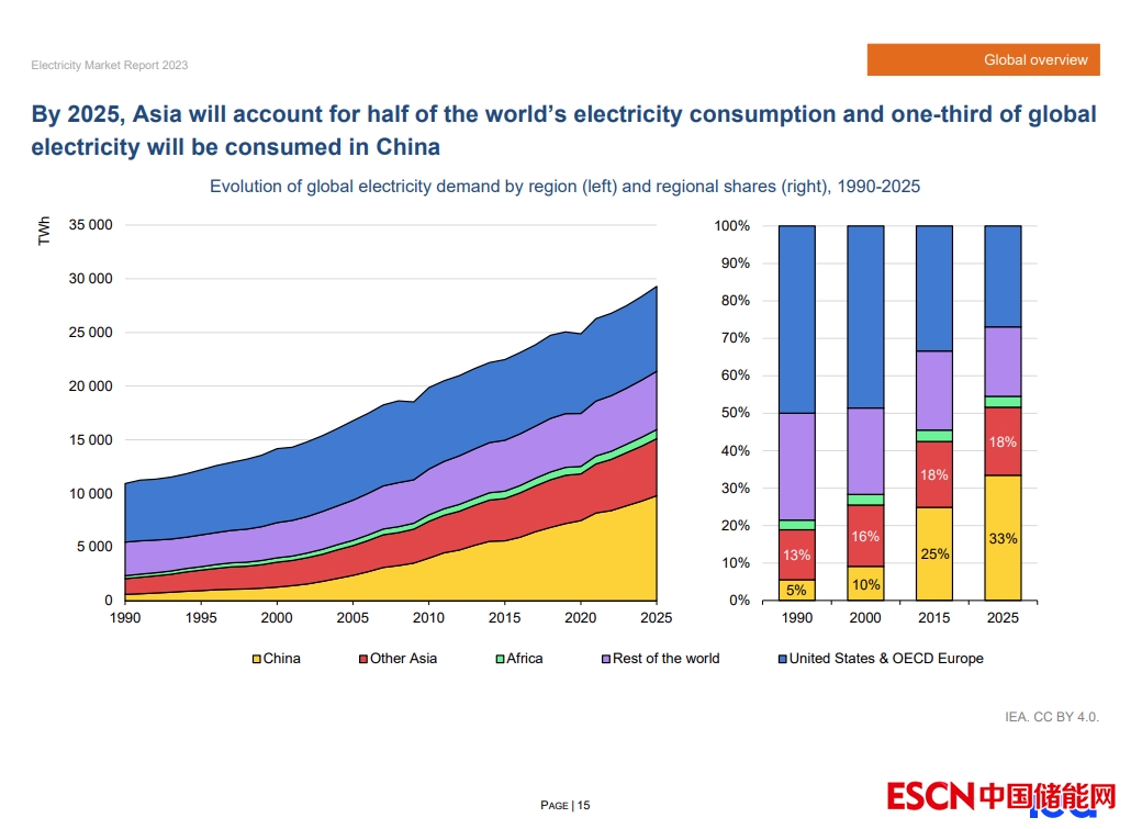 到2025年,亞洲的電力消費(fèi)將有史以來第一次占世界電力消費(fèi)的一半。而中國(guó)占全球電力消費(fèi)的三分之一。隨著以中國(guó)、印度和東南亞為首的新興市場(chǎng)和發(fā)展中經(jīng)濟(jì)體的電力消費(fèi)的增加,全球電力需求將加速增長(zhǎng),年增幅預(yù)計(jì)3%。