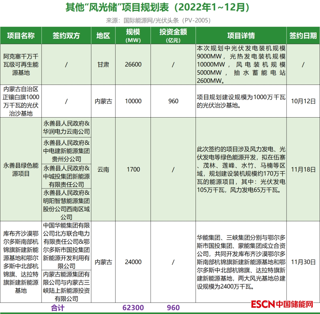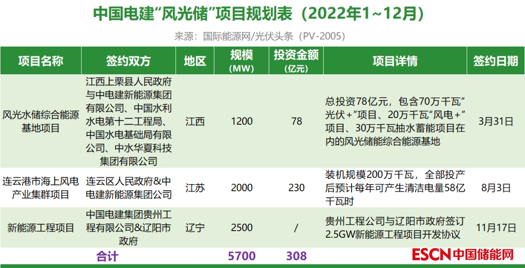 截至2022年12月31日,中國(guó)電建共簽約(規(guī)劃)3個(gè)風(fēng)光儲(chǔ)項(xiàng)目,其中已明確項(xiàng)目規(guī)模為5.7GW,明確投資金額308億元。