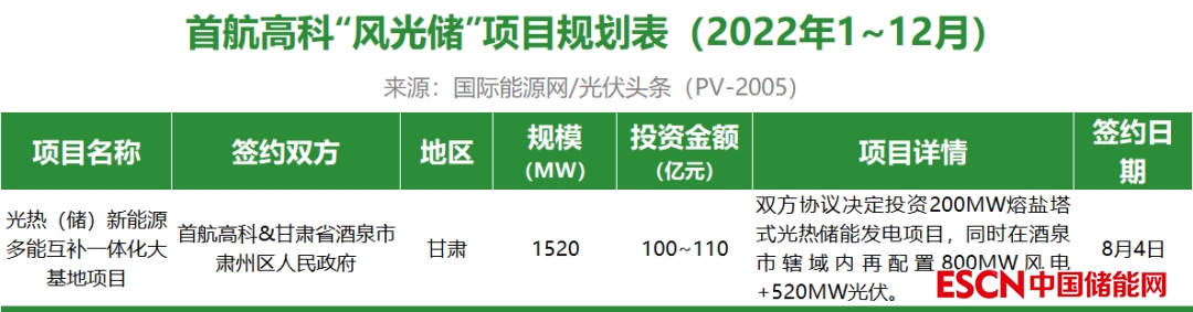 截至2022年12月31日,首航高科共簽約(規(guī)劃)1個(gè)風(fēng)光儲(chǔ)項(xiàng)目,項(xiàng)目規(guī)模為1.52GW,明確投資金額為100~110億元(注:統(tǒng)計(jì)時(shí)取值110億元)。