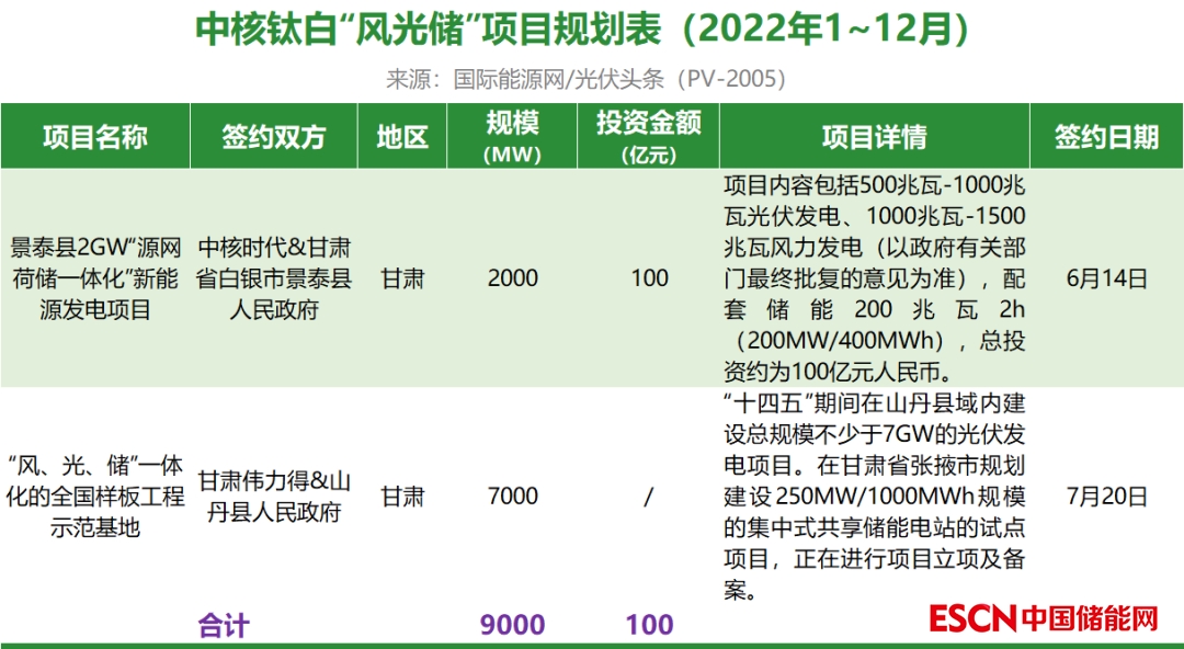截至2022年12月31日,中核鈦白共簽約(規(guī)劃)2個(gè)風(fēng)光儲(chǔ)項(xiàng)目,項(xiàng)目規(guī)模為9GW,1個(gè)項(xiàng)目明確投資金額為100億元。