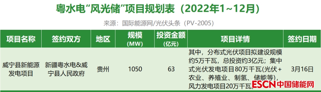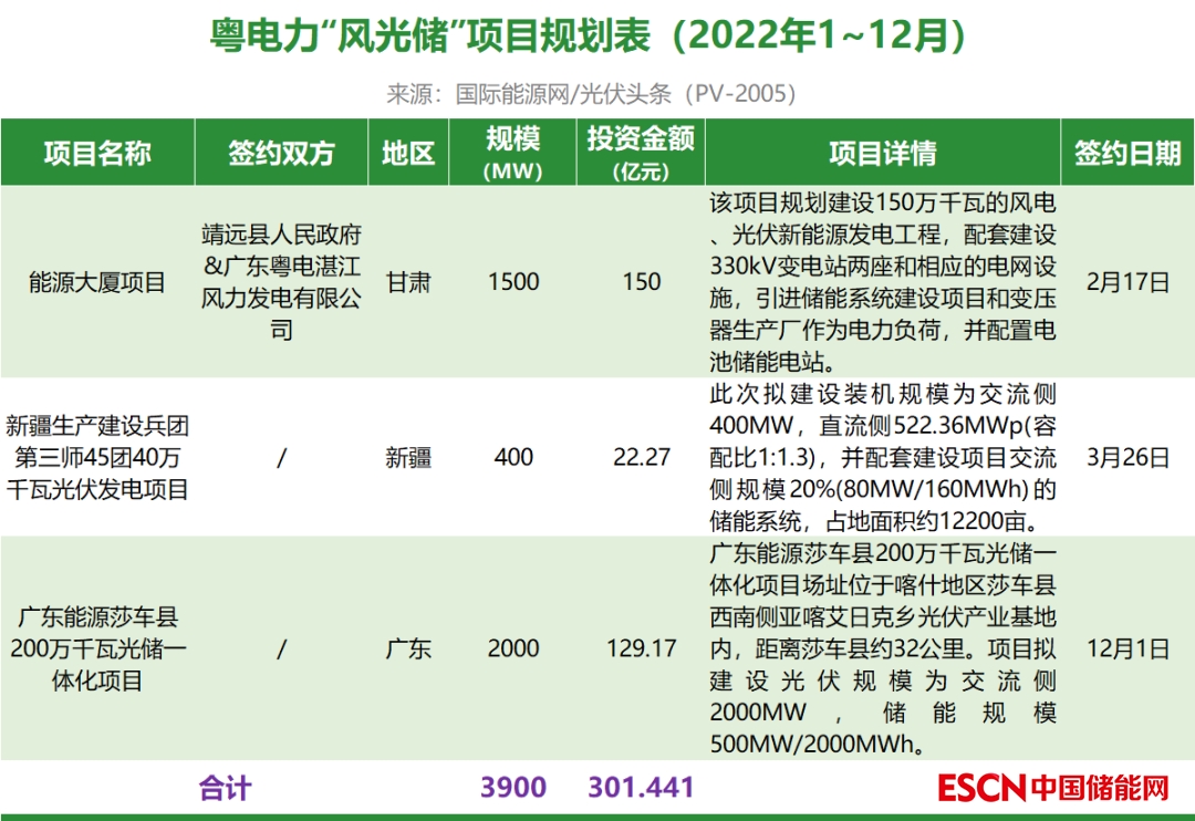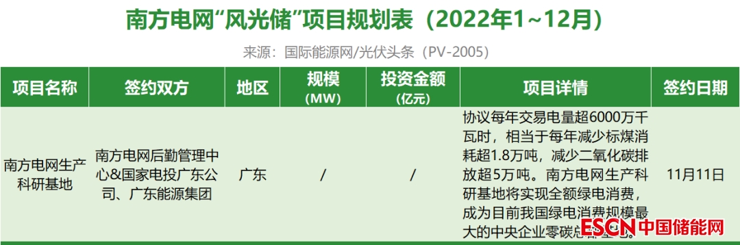 截至2022年12月31日,南方電網(wǎng)共簽約(規(guī)劃)1個(gè)風(fēng)光儲(chǔ)項(xiàng)目。