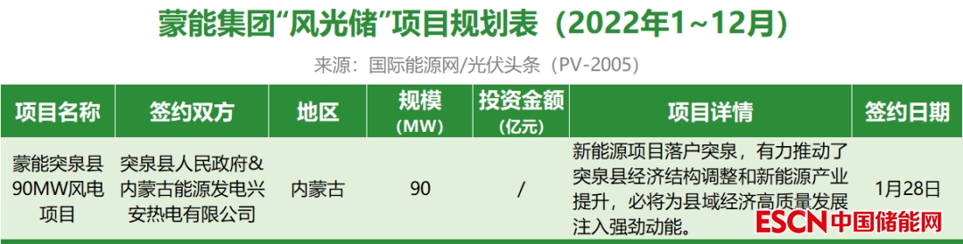 截至2022年12月31日,蒙能集團(tuán)共簽約(規(guī)劃)1個(gè)風(fēng)光儲(chǔ)項(xiàng)目,項(xiàng)目規(guī)模為90MW。