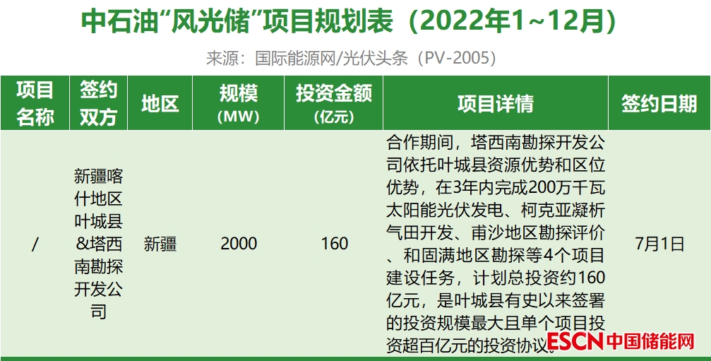 截至2022年12月31日,中石油共簽約(規(guī)劃)1個(gè)風(fēng)光儲(chǔ)項(xiàng)目,明確規(guī)模共計(jì)2GW,明確投資金額160億元。