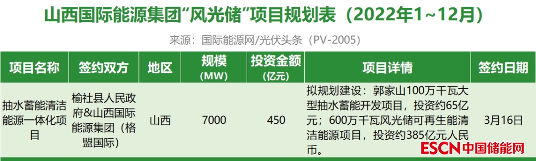 截至2022年12月31日,山西國(guó)際能源集團(tuán)共簽約(規(guī)劃)1個(gè)風(fēng)光儲(chǔ)項(xiàng)目,項(xiàng)目規(guī)模為7GW,投資金額450億元。