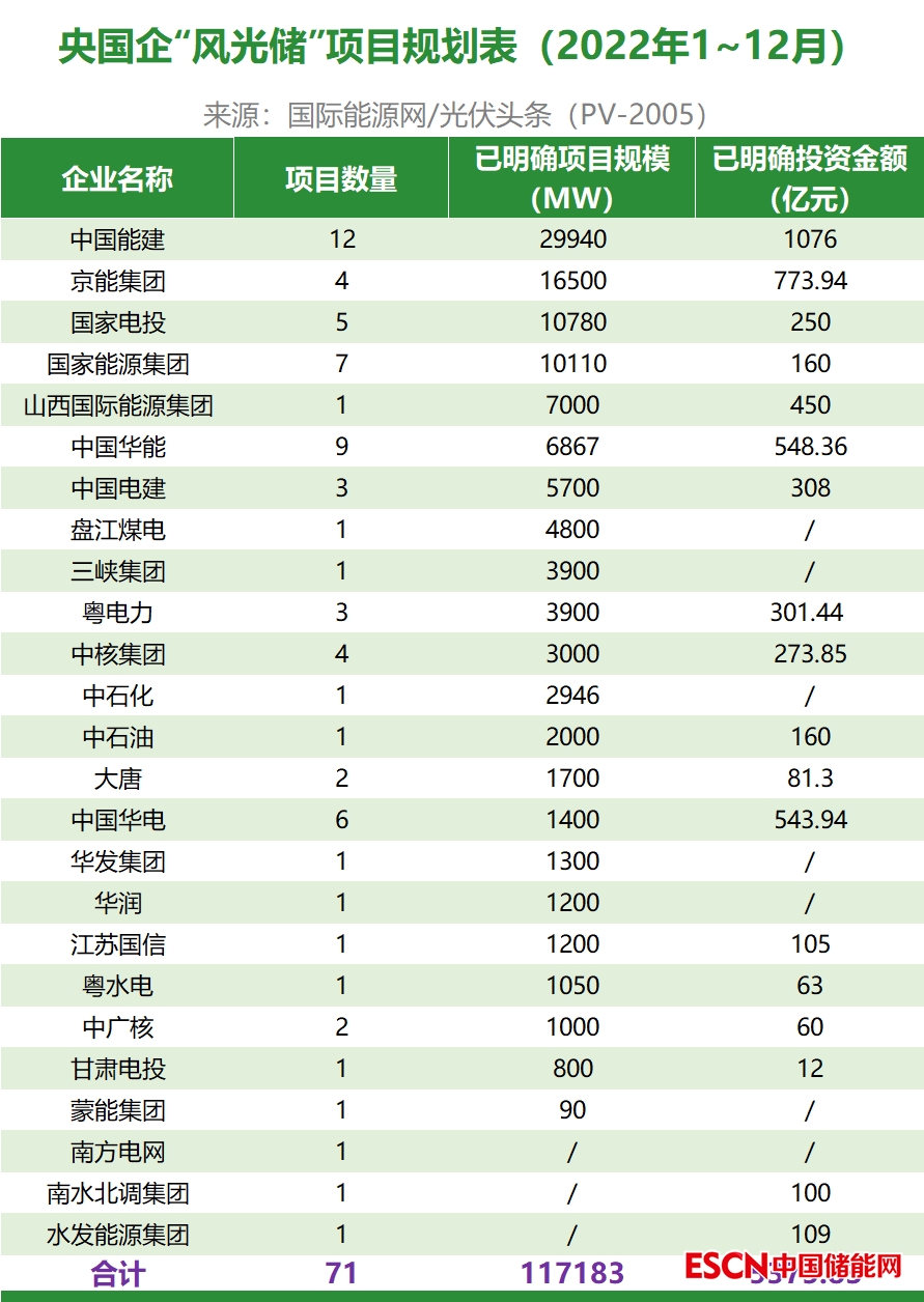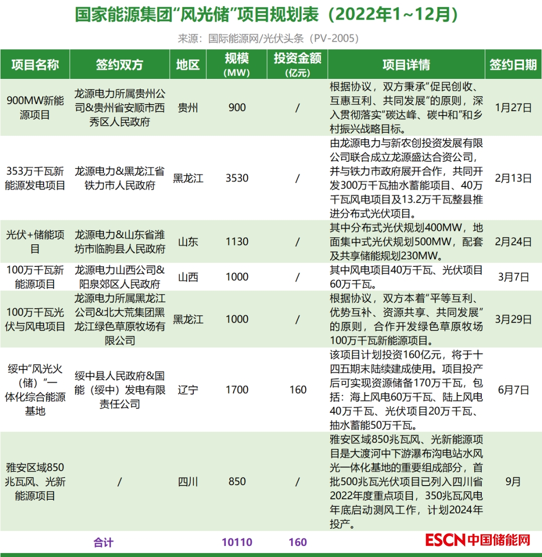 截至2022年12月31日,國(guó)家能源集團(tuán)共簽約(規(guī)劃)7個(gè)風(fēng)光儲(chǔ)項(xiàng)目,明確項(xiàng)目規(guī)模共計(jì)10.11GW,有1個(gè)項(xiàng)目明確投資金額160億元。