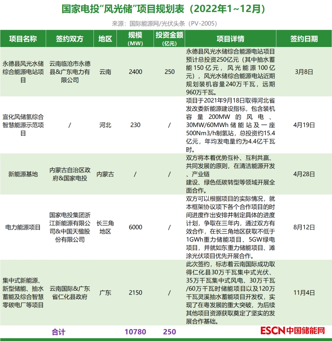 截至2022年12月31日,國(guó)家電投共簽約(規(guī)劃)5個(gè)風(fēng)光儲(chǔ)項(xiàng)目,明確規(guī)模共計(jì)10.78GW,有1個(gè)項(xiàng)目明確投資金額為250億元。