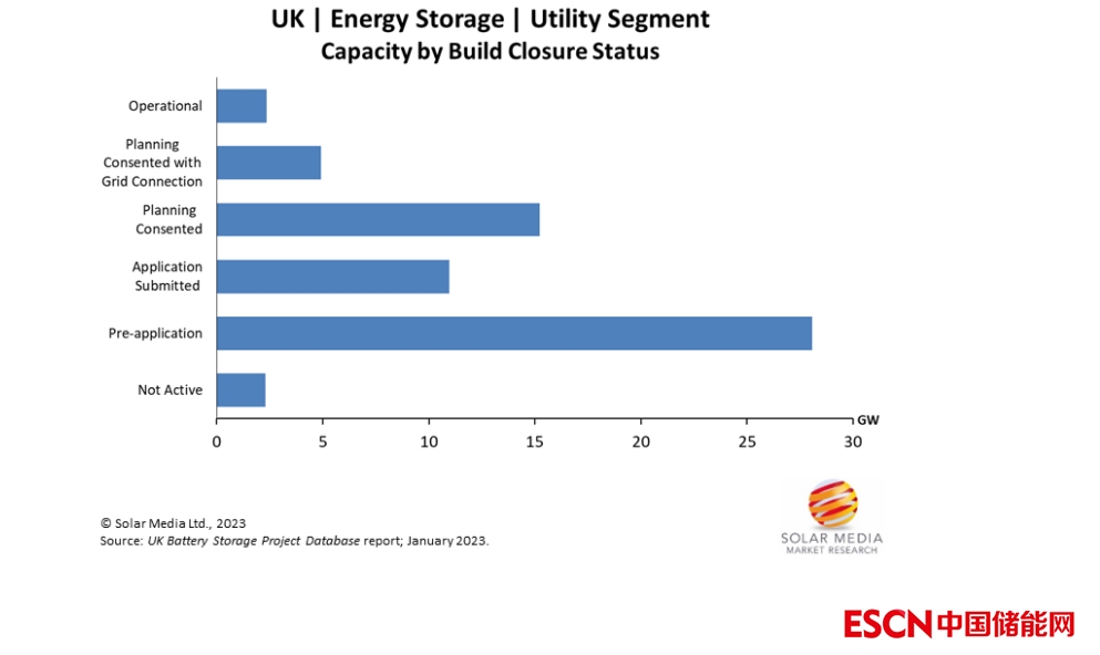 英國有大量儲能項目已在規(guī)劃中獲批,其中包括多個100MW以上的項目。