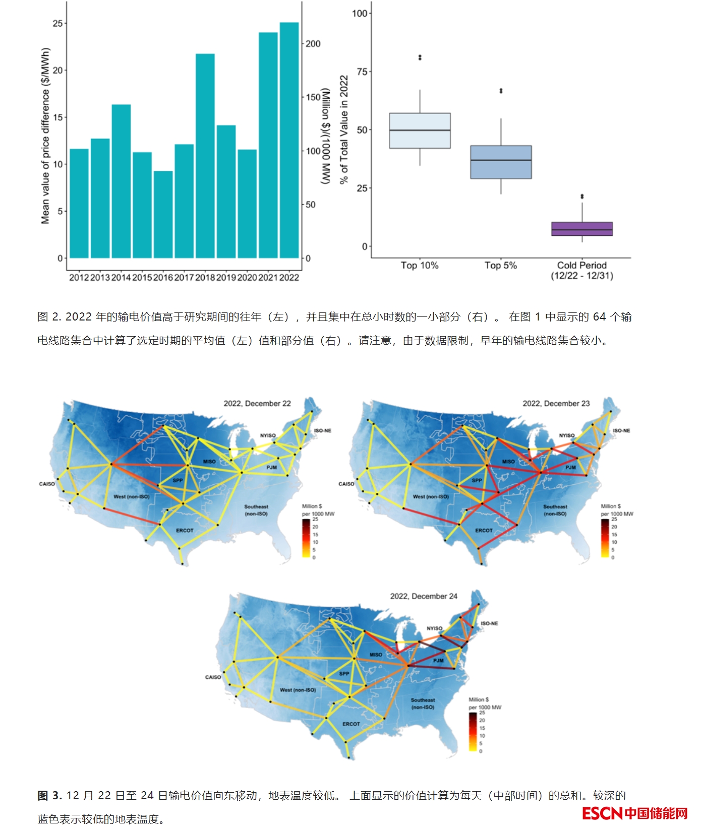 與過去幾年一樣,傳輸價(jià)值集中在總小時(shí)數(shù)的一小部分(大約 50% 的價(jià)值來自 5% 到 10% 的小時(shí)數(shù))。極端天氣或意外情況的一小部分時(shí)間的高價(jià)值表明,沒有充分模擬或考慮這些情況的規(guī)劃方法可能低估了新建輸電基礎(chǔ)設(shè)施的經(jīng)濟(jì)價(jià)值。(圖2)