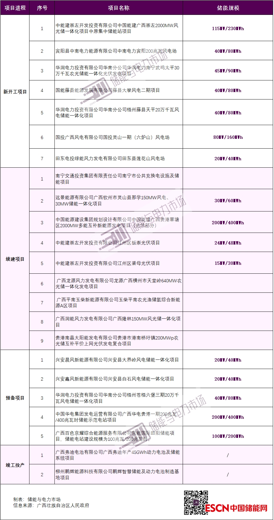 中國儲能網(wǎng)訊:近日,廣西壯族自治區(qū)政府辦公廳發(fā)布2023年自治區(qū)層面統(tǒng)籌推進(jìn)重大項目清單。清單中含有21個儲能項目在2023年新開工/續(xù)建/預(yù)備,規(guī)模超1029MW/2058MWh;2個儲能電池產(chǎn)線竣工投產(chǎn)。