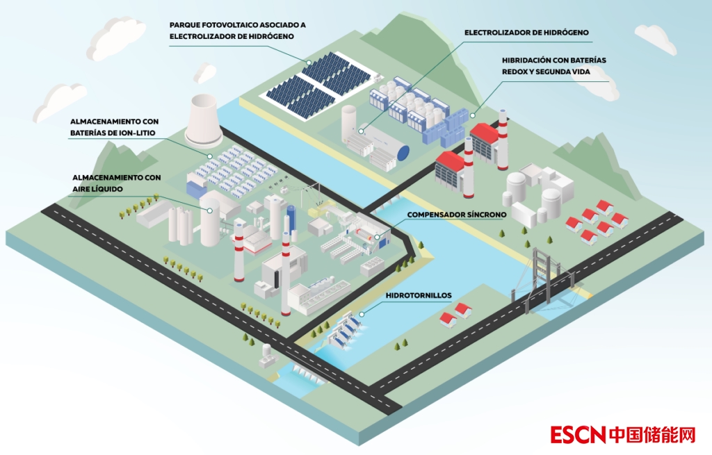 EDP Espa?a公司正在建設一個徑流式水力發(fā)電站和太陽能發(fā)電設施。該公司在其網(wǎng)站上表示,這些發(fā)電設施的電力將主要存儲為綠色氫氣,而將多余的能量存儲在鋰離子電池儲能系統(tǒng)、釩液流電池儲能系統(tǒng)和電動汽車二次使用電池的組合中。該公司還在考慮建立一個液體空氣儲能系統(tǒng)(LAES)。